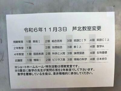 今後も生徒の皆さんが、安心して安全に学習活動ができるよう、しっかりサポートしていきます。荒天時の連絡はホームページ上にもありますので是非ご確認ください。
