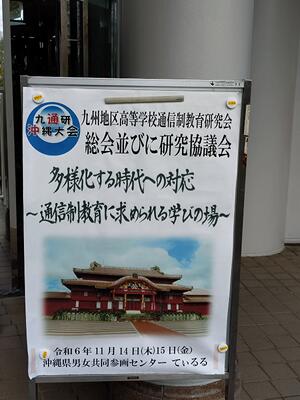11月14日(木)は九州地区通信制教育研究会が那覇市で開催され、湧心館通信制から多田隈先生が総合的な探究の時間の取り組みについて、研究発表を行いました。この3年間の取り組みの中で課題を見出し、実践や改善を行った本校の軌跡が発表され、参加校からは様々な質問や共感の声、ご感想等をいただきました。大会で学んだことを今後に繋げていきたいと思います。