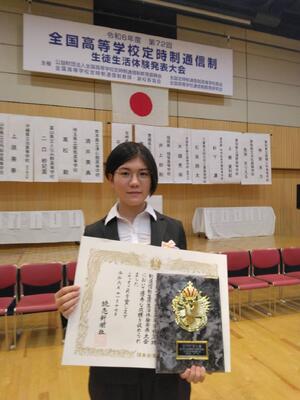 11月17日(日)東京のハリウッドプラザで行われた「第72回全国高等学校定時制通信制生徒生活体験発表大会」に出場してきました。過日行われた県大会で見事県代表を勝ち取り、今回は東京大会の予選、本選と進み、最終的には見事特別賞「読売新聞社賞」を受賞しました。おめでとうございます!