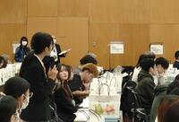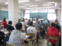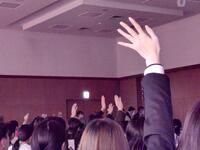 希望参加ですが、大教室を埋め尽くす参加者の数で、全学年からの参加が見受けられました。自分探しに始まり、進路決定までの軌跡や様々な対策、自分の殻を破り目標に向かう気概、卒業生からは大学生活の様子などが語られ、参加者は真剣に耳を傾けていました。発表後には質疑応答も相次ぎ時間が足りないほどでした。