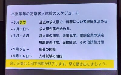 本日は、本校の進路状況、進学、奨学金、就職の4つの柱で話がありました。大教室に参加者がぎっしりで、皆さん真剣に説明に聞き入っていました。自己実現のためには、スケジューリングと様々な手段を用いた傾向と対策の研究が必要です。すこしずつとりかかっていきましょう!