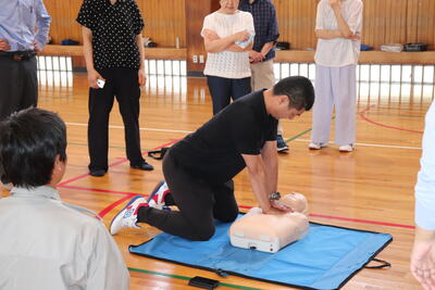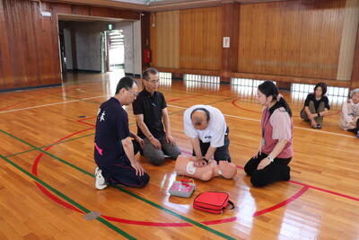 今回は、ダミー人形を使用し、胸骨圧迫(心臓マッサージ)やAEDの取り付け等を行い、正しい心肺蘇生法を学びました。また、エピペン(アナフィラキシー補助治療剤)の使用方法についても教えていただきました。