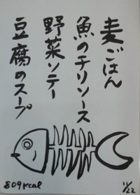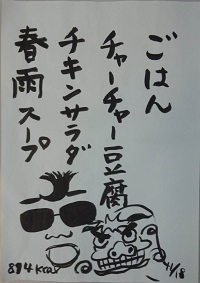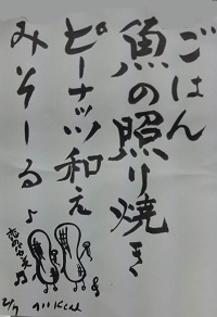毎日の献立が1枚の紙に書かれて給食室に掲示されています。