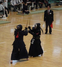 一回りも違う歳の若い相手と戦う姿は、先生が生徒に稽古をつけているような試合展開でした。若くして動きの速い面打ちの技に屈して敗れはしましたが、堂々とした貫禄のある試合ぶりは見事でした。
