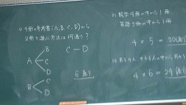 情報科学科情報処理コースの3年生、選択科目で、「総合実践」、「数学A」、「現代文A」の3科目から選択していて選択者は6人の授業でした。単元は場合の数でした。