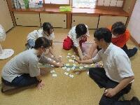 続いて行われた「文化・スポーツ交流会」では、バドミントン、ソフトバレーボール、卓球、百人一首、オセロ・囲碁将棋・チェスの種目に分かれ、クラスや学年の枠を越えて、初対面の人とも交流しながら楽しく活動しました。笑顔あふれる素敵な時間になりましたね。