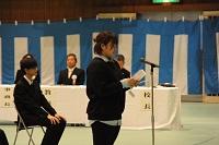 選手の抱負と生徒会長の激励の言葉がのべられ、大きな拍手で送り出しました。