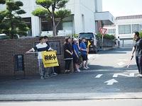 7月10日(水)~12日(金)の3日間、本校正門を含めて3か所で16:30~17:00の時間に交通指導を実施しました。今回は生徒会の生徒も自主的に参加し、交通安全運動を呼びかけました。雨の降る日もありましたが、予定通り実施することができました。交通旗やプラカードを持って、呼びかけをがんばる生徒会の姿がありました。一人一人が交通ルールを守り、交通事故防止に努めてほしいと思います。