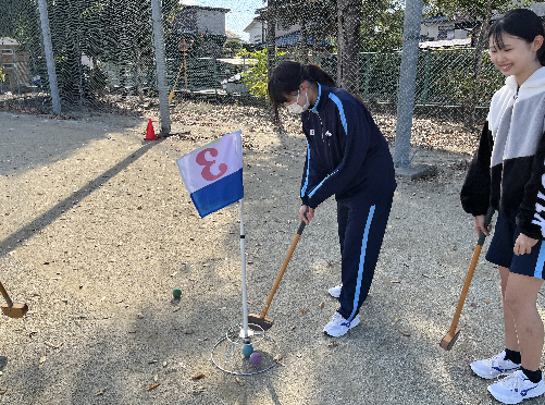 令和6年12月20日(金)1学年レクリエーション『グラウンドゴルフ大会』を行いました。当日は天気に恵まれ、学校グラウンドを最大限に使った18ホールで実施しました。各クラスごとにチームを編成、先生方も参加して賑やかな大会となりました。それぞれが運営に携わり、久しぶりに学年で行う活動を全員が楽しんでいました。自然の中にコースを作るため、苦戦する様子やボールを見失うハプニングもありましたが、大変盛り上がる時間となりました。