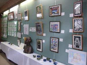 ↑生活体験発表(各校代表9人) ↑各校の展示