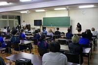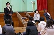 「授業がわかりすい。」と応えた数字が昨年より増えている。生徒部の方からSNSの正しい使い方や「心の四季」(その場面を自分の行動を振り返って考える)、進路指導部の方から「高等教育の修学支援新制度」が紹介された。最後に転退任式があり、11名の先生から別れのことばがあり、生徒会長からお礼のことばと花束贈呈があった。