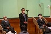 式では、水野副校長先生が「相手に対する敬意の気持ち、審判の方々への感謝の気持ちを忘れないように」。また、「なせば成る なさねば成らぬ 何事も 成らぬは人の なさぬなりけり(上杉鷹山)(意味:やればできる。 何事もやらなければ成功しない。できないのは、やろうとしていないからだ。)」を引用され、先生ご自身が壁にぶつかったときに励まされた言葉だとご紹介されました。