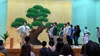 11月14日(木)体育館で本校と熊本工業高校定時制と合同で、和泉元彌さんを招き狂言の鑑賞を行いました。ほとんどの生徒が狂言を見るのが初めてなので、狂言について初心者向けに長い歴史があることを、鳥の鳴き声などを使って、説明されました。その後、狂言「盆山」「仏師」が演じられました。途中で時々会場から笑い声が聞こえ、改めて狂言が娯楽であることを認識させられました。交流会では稽古の模擬体験がステージの生徒代表と一緒に全員で行われました。質問コーナーでは稽古をする時に気を付けていることについて、「スタート地点で学ぶ」「困難を乗り越える真っ直ぐな気持ちを持つ」を話されました。そして最後のあいさつでは「自分を信じる。人を信じることの大切さ」を述べられました。 (文責 吉武)
