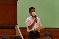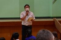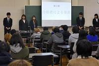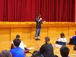 今年も生活体験作文の発表会が行われました。今年の出場者は14名でみんな各々の過去を振り返り、辛かった時のこと、どうしようもなく落ち込んだこと、嬉しかったこと、悩んでいる問題への解決等々、思い思いの心の内を話してくれました。また、今年は専修コースの方々も参加して、貴重な話をいただきました。人間は、おごってくるとダメになってしまう。自分はそんな人間になりたくない、そのために自分は一生勉強をし続けます、という言葉が印象的でした。 最後に、14名の発表を聞いている大勢の生徒たちも一生懸命聞くことができて立派な態度でした。