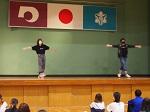 <和泉元彌さんによる狂言の指導> <最後はお礼の花束贈呈>