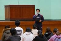 進路指導部の方から数字で現れる変化(出席・成績)に気づき成長していくこと、将来の夢や目標など先のことを見すえて行動していくこと、社会人としてのマナー(あいさつ・言葉遣い)を身につけることの大切さを話されました。