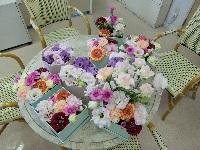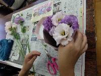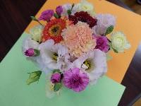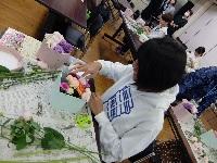 11月6日(水) プロの花屋さんから指導を受け、BOX型のフラワーアレジメントを作成しました。仕上がったお花は、湧心苑に贈呈しました。