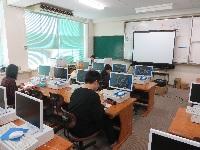 写真は「生物基礎」での顕微鏡観察実験の様子。(タマネギの表皮細胞)