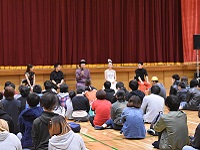 公演終了後は、出演者の皆様との交流会が開かれ、「何歳から練習しているんですか?」など、生徒からの質問に気さくに答えていただき、楽しいひと時を過ごすことができました。