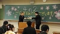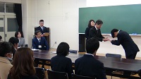 専修コースの方々の編入式が4月8日行われた。このコースは本校情報科学科に設置され、高校卒業をすでにされた方を対象に募集を行っているコースである。今年度は3人の方が合格され、2年間の学習で商業科目である簿記や情報処理などの科目を勉強し、知識や技術の修得をめざして頑張っている。