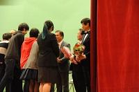 終業式では、校長先生から思春期の悩みについて話をされ、いくつになっても人間は悩む。涙を流してもいい、悔しがってもいい、大声あげたりしてもいい・・ただ、それでくじけるのではなく、それを乗り越えていく事が大切である、と。生徒全員静かにお話をきいた。