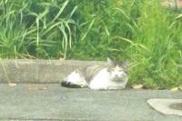みんな頑張ってにゃ(湧心館の駐車場で寝ていた猫)