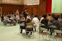 はじめに、本校スクールカウンセラー高野美雪先生より『親が子どもにできるのは何だろう?』と題してご講演をいただきました。総会では新会長が選出され、活動計画、予算などが審議・承認されました。学校からの報告・質疑の後、各教室に分かれて学級懇談会が行われました。その後の新役員会では各役員の選出と活動計画の説明が行われ、最後は記念撮影をし和やかな雰囲気の中、会は終了しました。
