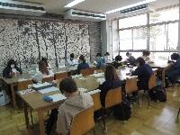 5月19日(水) 本校学習会でした。生徒会室では、「ゆうつう新聞」の編集作業が行われていました。
