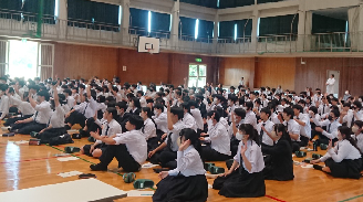 令和5年5月26日(金)本校第1体育館で交通安全教室が行われました。講師に寺原自動車学校より宮原さん、平江さんをお迎えし、自転車交通事故について主に講話を頂きました。自転車の交通マナーやルールは今年ヘルメット着用義務化もあり大きく以前とは変わろうとしています。その背景には自転車交通事故の増加も考えられ、私たち高校生にとっても身近な問題だと感じました。交通委員長3年森川さんから、講話を聞いて自転車の交通マナーを遵守し、交通安全意識を高めたいと謝辞を述べ、充実した講演会となりました。