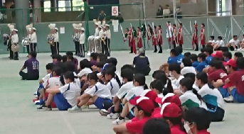 | 開会式後に記念撮影 | 整列の様子 | いよいよ行進です | マーチングを見学する様子 |