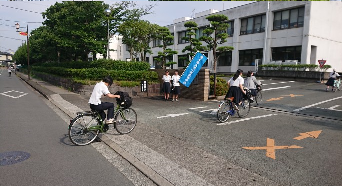 | 全校生徒が気持ちよい挨拶をしています | 自転車通学中も互いに声を掛け合いました |