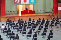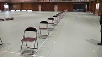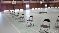 生徒は第1体育館(1、3年生)と第2体育館(2年生)に分かれて、
