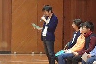 生徒会長、副会長、書記、体育委員長、文化委員長、保健委員長、各学年常任委員の各立候補者14名が立会演説を行った。