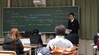 公開授業期間中の12月15日(木)の4限に行われた、数学科の研究授業(丑上 洋先生)を参観しました。高校時代以来久しぶりの数学の授業、それも「数学Ⅱ」の三角関数「加法定理」!少々緊張して教室に入りました。