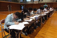 総合学習やLHRの中で、「生活体験作文作成」の活動を6月末から実施してきた。今日はそのクラス代表の発表会である。審査には各クラスの生徒代表と職員の代表があたった。