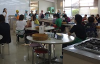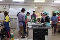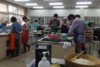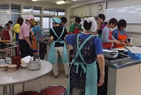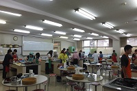 平成26年7月22日(火)に1年1組の生徒と地域の熟年者の方9名で合同調理をしました。調理・会食の後は、熟年者の方の今昔物語をグループに分かれて話していただきました。この行事は湧心館定時制の恒例行事となっており、地域との連携を深める取組となっています。