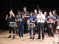 ハンドベルの演奏で始まり、ギターのリードで合唱、篠笛による間奏、そして合唱。この時間、ステージ横では、墨絵と書の作品が完成していきます。すばらしいパフォーマンスとなりました。