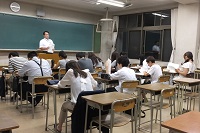 夜の時間帯とはいえとても蒸し暑い中、仕事帰りで疲れている生徒たちも頑張ってしっかり話を聞いていました。