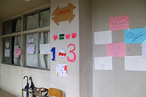 図書室前では図書委員が文化祭の発表の準備をしていました。楽しみですね。