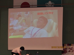 本日、熊本赤十字血液センターの方を講師に迎えて献血セミナーが行われました。若い世代の献血率が減少している現状や献血の意義と必要性について語っていただきました。生徒たちは関心を持って話を聞いていました。