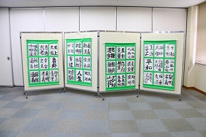 生徒会の生徒が文化祭の飾りつけの準備をしていました。