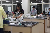 給食室も地震の影響で食事がつくれませんので、今日は「パンと牛乳」の提供でした。きちんと手を洗い、久しぶりに生徒達の声と笑顔があふれた給食室でした。