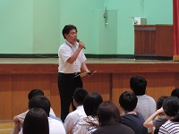 この震災と避難の経験から、自治は、「自分たちのことを、自分たちで責任もってやるとても大事なこと」であることを再確認できた。「学校は自分に対して何をしてくれるのか」ではなく、「自分は何ができるのか」を考えて生活・行動して欲しい。生徒会と協力して頑張っていって欲しい、と締めくくられました。