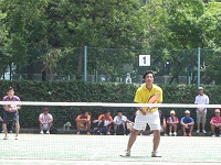 蒸し暑い体育館内には、校長先生の応援の中、生徒たちの熱気があふれ、汗だくだくの試合展開でした。予想に反して、初戦で敗退する先輩!、着々と駒を進めるペア!