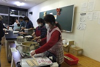 給食室も地震の影響で食事がつくれませんので、今日は「パンと牛乳」の提供でした。きちんと手を洗い、久しぶりに生徒達の声と笑顔があふれた給食室でした。