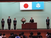 新入生代表は、「夕方から学ぶという、小学校・中学校とは違う環境でのスタートなので、少し不安もありますのが、さまざまな経験や出会いに対する期待の気持ちでいっぱいです。しっかり勉学に励み、心豊かな人間に成長できるよう努力します」と元気よく大きな声で、宣誓しました。