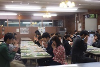 毎年恒例で、最初の給食は「カレー」です。和気あいあいと楽しいひとときでした。