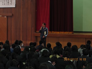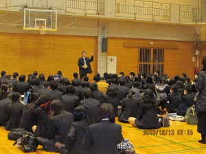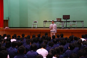 全校集会の校長講話では「人間の無限の可能性」について、円周率を覚える世界記録をたとえに話をされました。自分の好きなことをコツコツと努力すれば、自分の思い描いた人生を歩むことができる、みんなにはその無限の可能性があると語られました。