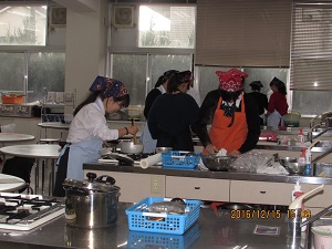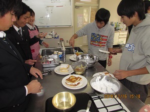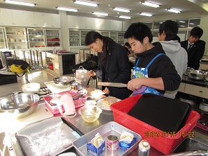 家庭科室ではケーキ作りが行われていました。皆で楽しくデコレーションケーキを作っていました。美味しそうです。