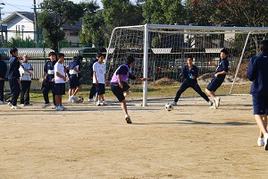 今月22日にクラスマッチが行われます。男子はサッカー(雨天時はバスケットボール)、女子はバドミントンを学年のクラスごとで競います。体育の授業では、クラスマッチに向けて練習試合が行われていました。みな楽しそうです。